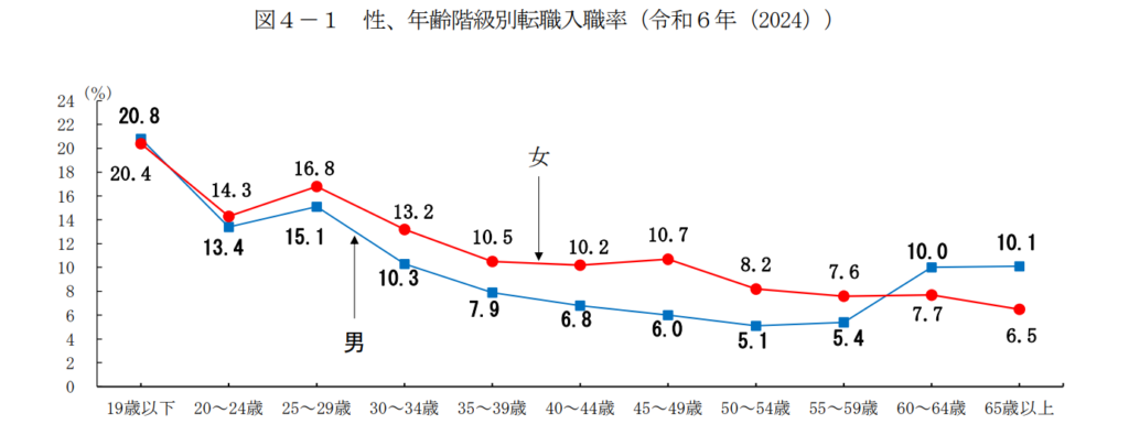 事実、厚生労働省が発表した『-令和6年雇用動向調査結果の概況-』では、40代の転職入職者は10%を超えており、年齢を重ねても転職を成功させている人が一定割合いることがわかります。